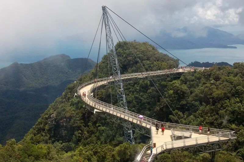 蘭卡威天空橋在地面上空徘徊400英尺,風景非常漂亮,基於安全问题,已多次關閉進行維護, 而且關閉了兩年,但是,現在公眾遊客可以完全進入。