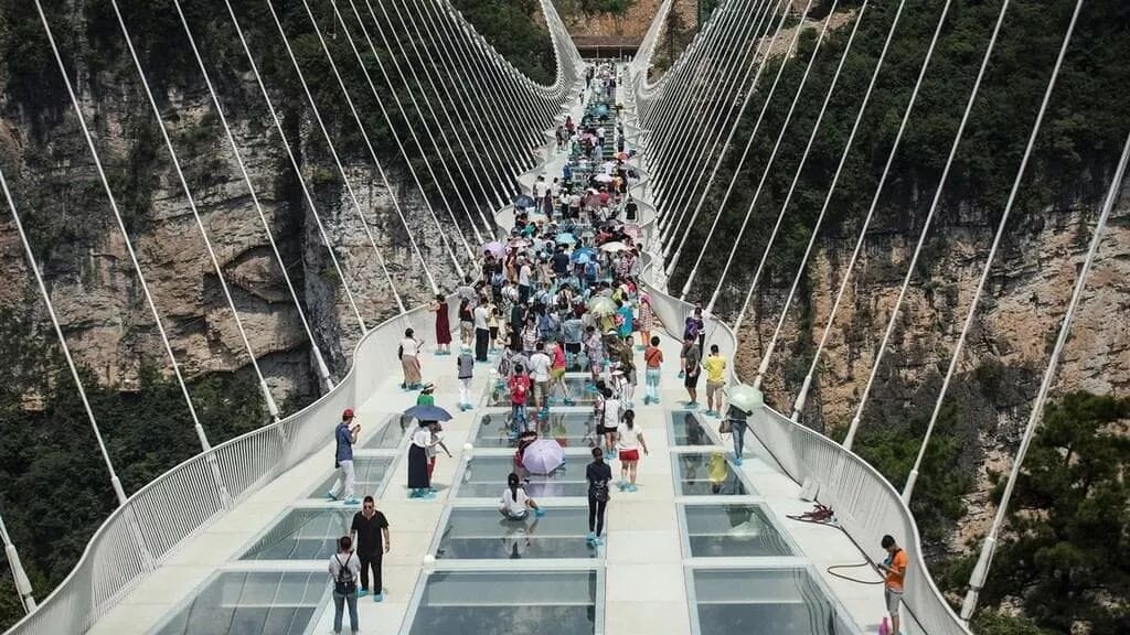 這座玻璃橋位於中國石牛寨國家地質公園內,兩座山之間綿延1,410英尺。 在開放之後,橋樑必須暫時關閉,因為它的處理量是每天分配的8,000名訪客的10倍。 當你從玻璃底部看時,984英尺的高度肯定會給你一個驚嚇。