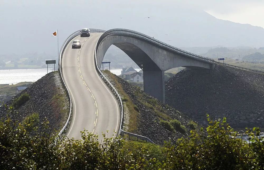 如果您想象座過山車,在即將塌下的陡峭的桥上架車,顿時感受到肚子下沉的感覺,那麼您一定會喜歡這座獨特的挪威橋。 從某些角度來看,當你開車經過的時後,看起來好像會讓你掉下來,你不相信的話? 親自去試試吧。