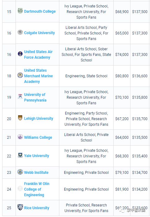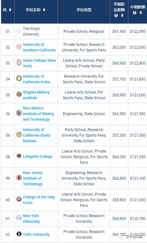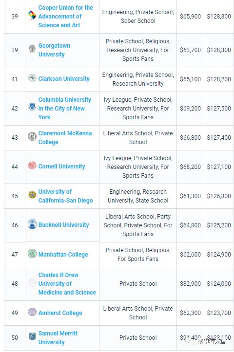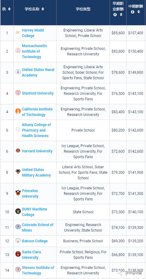 PayScale的“大学薪资报告”根据校友的薪资中位数对高校进行了排名。