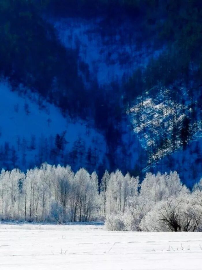 穿梭在白桦林间,就这么一直走一直走,身后是踩下的深深浅浅的脚印,穿的厚厚的或许会让自己感觉很温暖吧。