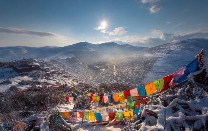 飘扬的经幡,望着远处的山川,虔诚的双手合十,就让一切都随风飘去。