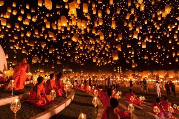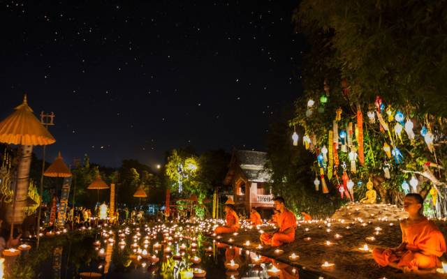 千盏烛灯、大师诵经、还有热闹的兰纳集市,都会让你度过一个难忘又本地的最浪漫节日。