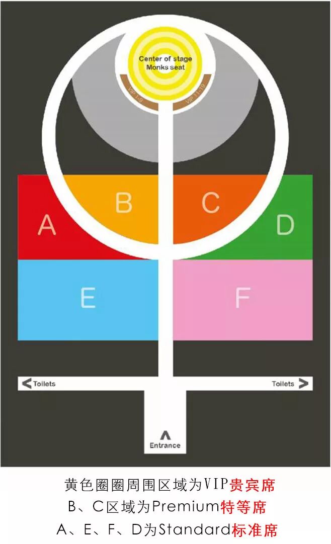 分为VIP席(2888元)、特等席(1588元)、标准席(1288)三个档次, 不过官网一开售标准席就售空了,看来土豪还是很多滴~目前还有少量高价票可以通过代理渠道订购。