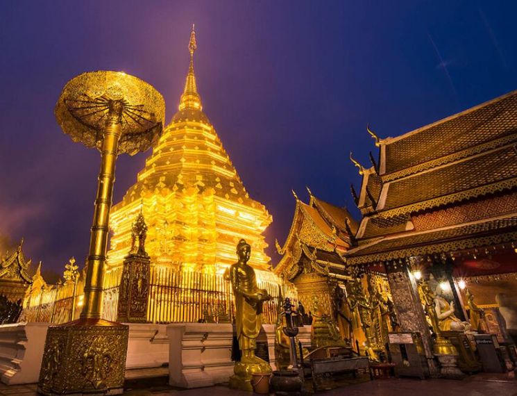 寺庙一定是清迈不能错过的景色。素帖寺又名双龙寺,是泰国北部最为神圣的寺庙之一。据说,在这座金光耀眼的佛塔中,供奉着佛祖释迦牟尼的舍利子,引得一年四季香火不断,世界各地的善男善女都远道而来给佛祖进香。