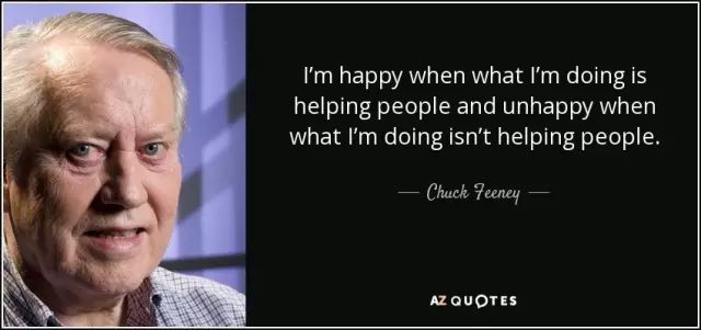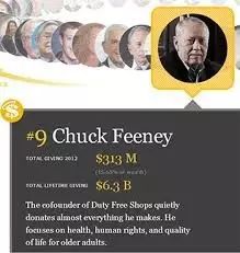 查克·菲尼曾说:“人们常问我如何寻欢作乐,我知道我在帮助人们的时候就很开心,不帮助人的时候就不开心。”有人问他为何在世时就将全部财富捐给社会,他说:“我看不到有什么理由延迟捐款,这么好的事情现在就可以完成有什么不好呢?”