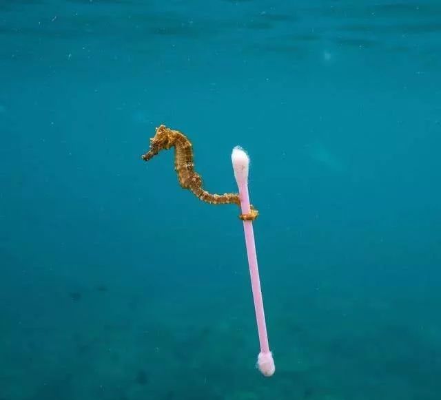 13. 这张勾着棉花棒的海马照片表示了现在海洋的真实状况。