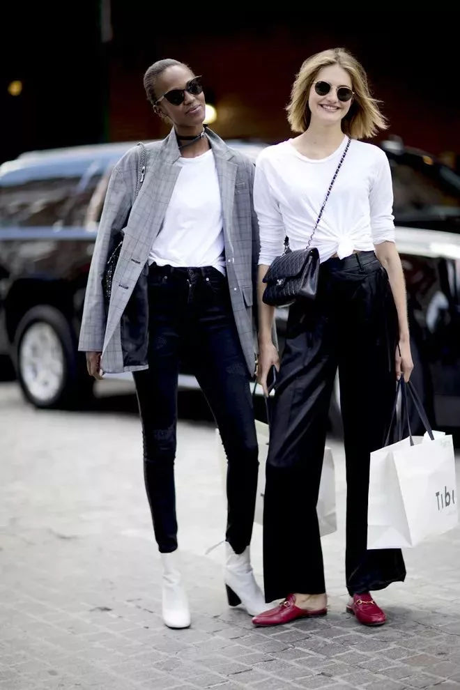 同色呼应可是时髦精常用来get街拍的手段,全身白或是全身黑,利用材质或是版型,拉长层次对比,同时选择材质偏薄的休闲阔腿裤,不仅不显胖,看似简单的搭配,上身却十分显质感!
