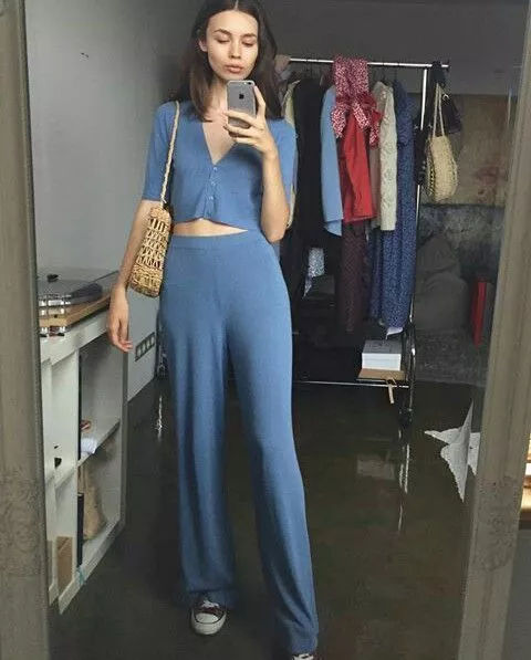 轻熟复古的牛仔T恤+休闲阔腿裤,轻薄款式无论在柔软度和垂吊感方面都十分优秀!无论大小个子都能hold住!显瘦又利落!休闲之中带着一些小优雅!好看才是真理啊!