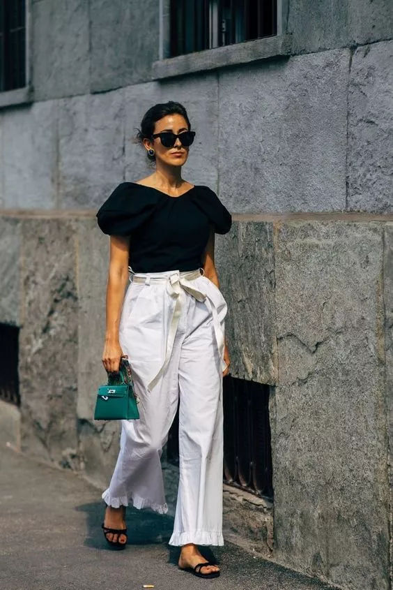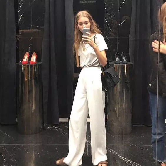 不少时髦精选择亚麻材质阔腿裤配T恤,降低色彩饱和度!搭配凉拖,休闲之中不失质感!复古又chic!