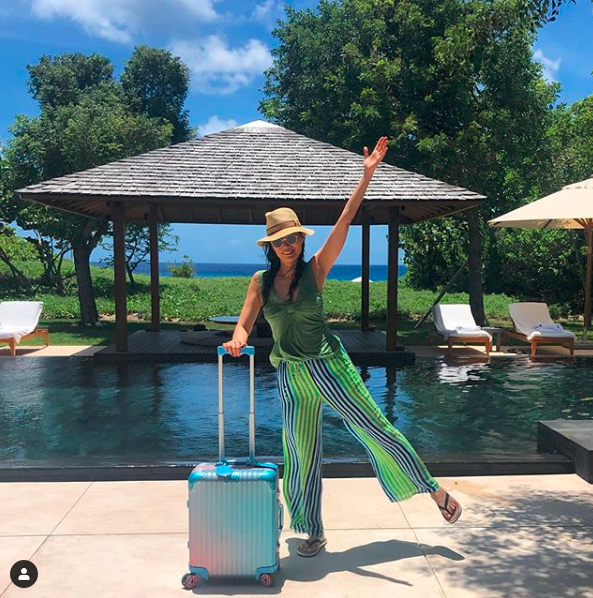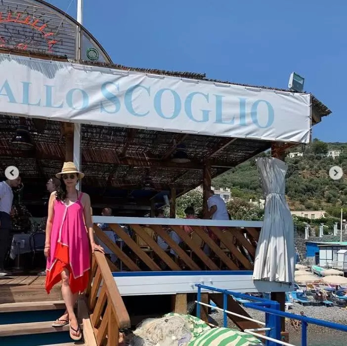 先前在外旅游的穿搭,邓文迪也是很有个性的,你会看到她穿着一件绿色的无袖上衣,看上去特别的清新。下身穿着一条绿色的条纹衣服,更是给人一种很特别的设计。条纹的裤子更是很气质。在脚上穿着一双拖鞋更是让她看上去特别的清凉。戴着一顶遮阳帽,给人的感觉是充满了活力。