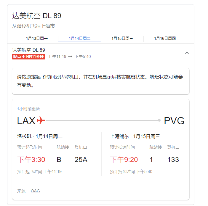 有网友曝出,肇事的航班是达美航空DL89航班,这是一架从洛杉矶飞往上海的航班,原定上午11点19分起飞。
