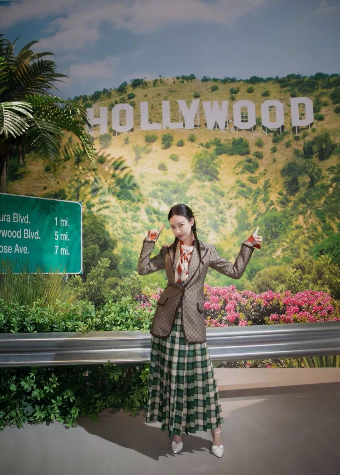 ▲马思纯用西装搭配格子半裙,复古OL风你值得拥有!