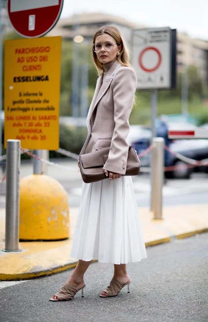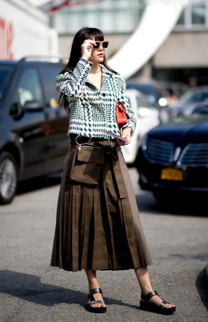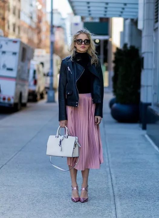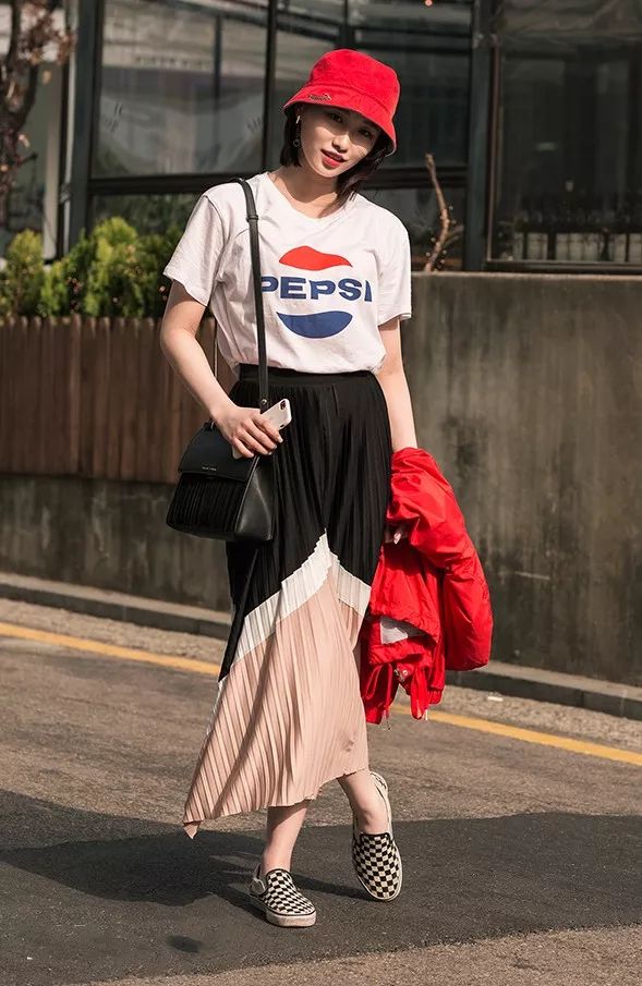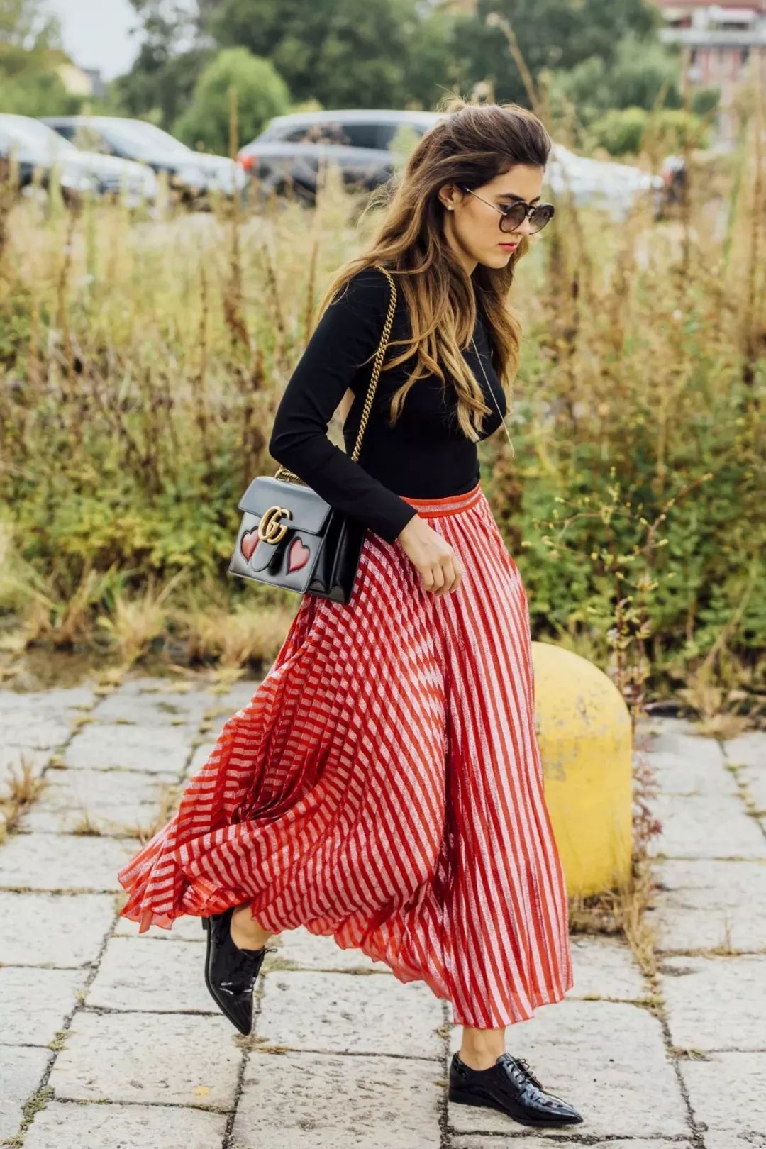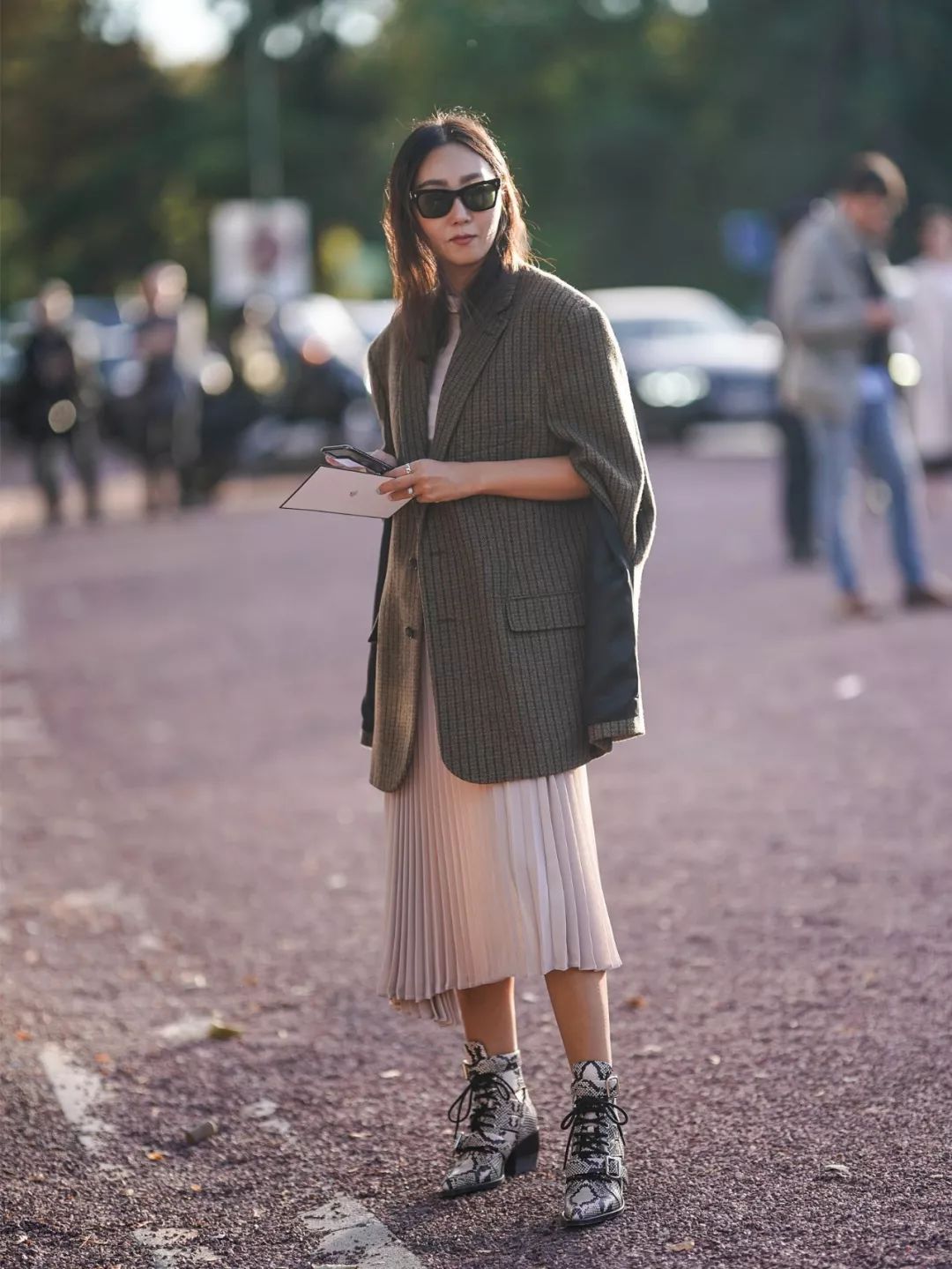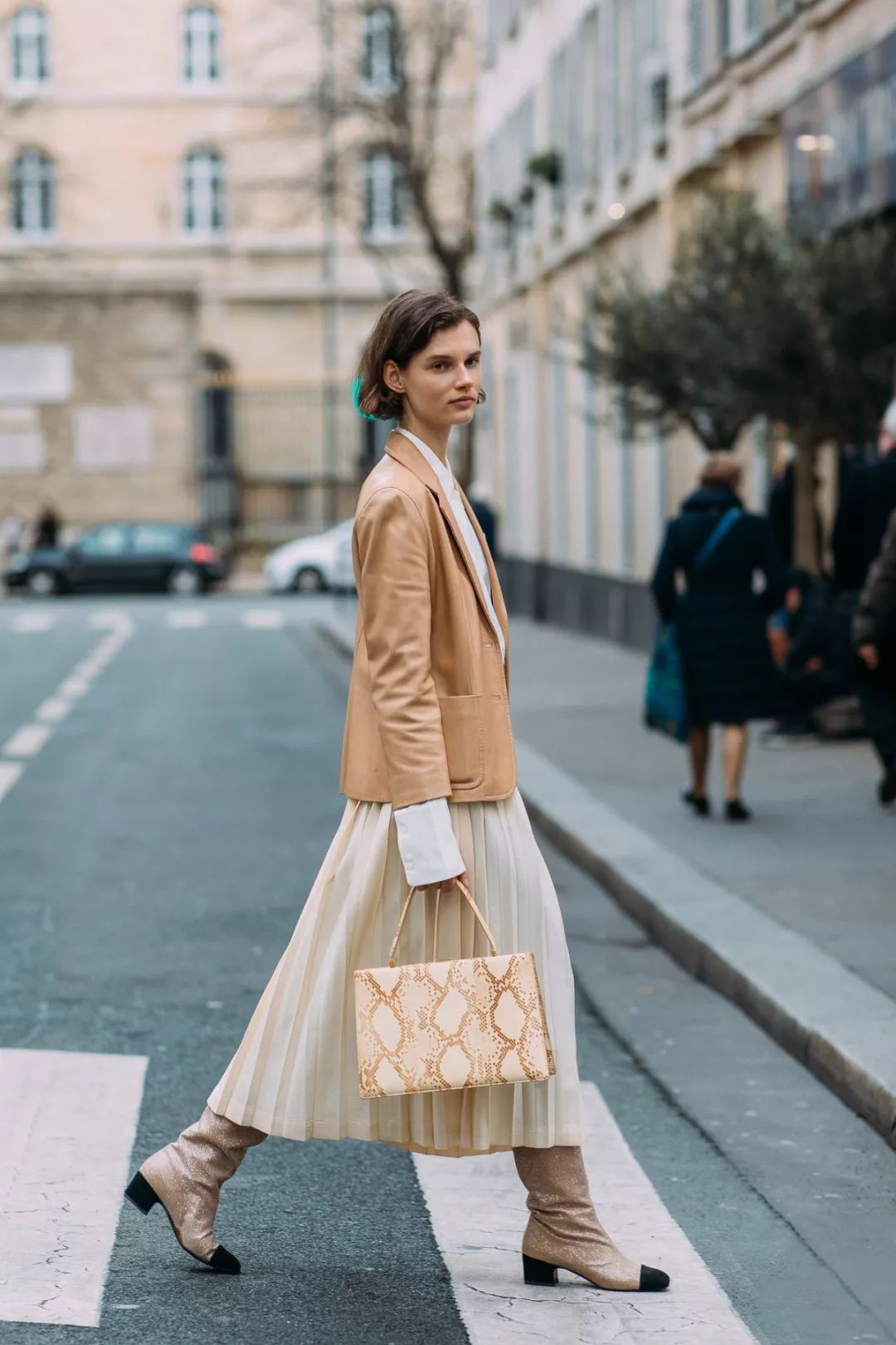百褶裙美炸四季,时髦精们更是秀翻天。