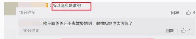 这件事也引起了人们在评论区中的讨论,有人直接就信了,直接问“这次是谁的?”“是不是非要生女儿”?也有网友评论说:连老三的爹是谁都还没实锤,怎么老四就来了?张柏芝真的是怀孕狂魔吗?如果张柏芝真的怀孕了,这会不会是跟三胎小王子的生父是同一个人?