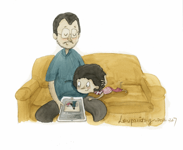 晚上她陪孩子看绘本、哄睡的时候,他看电视;
