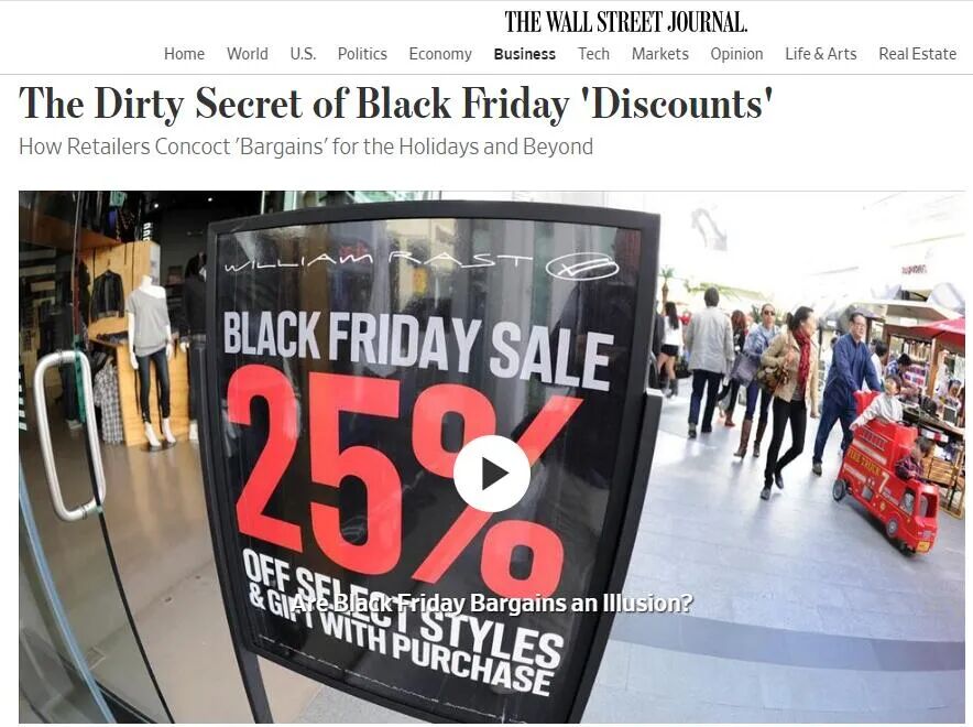 图:华尔街日报曾报道黑五网购涨价的情况