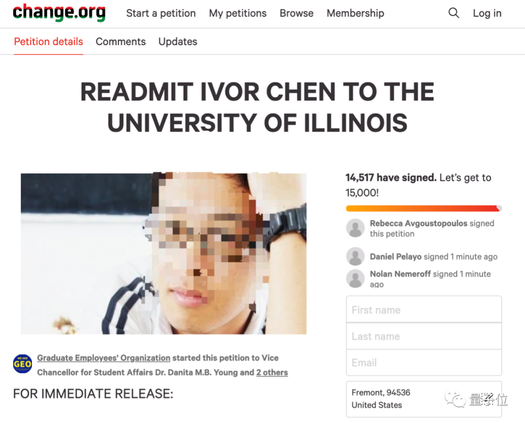 GEO也很快在网上发起联名,支持陈同学,要求撤销处罚的请愿活动,目前已有将近1.5万人联名。