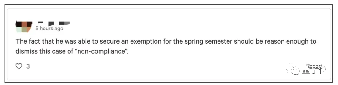 相应的,既然他能够获得春季学期的豁免,这个事实也足够证明秋季学期的’不合规’指控是不合理的: