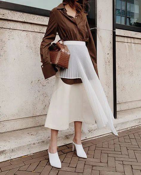 对于春季混搭而言裙装绝对是杀手锏般的存在,其中足够轻熟雅飒又足够别致大方的“半身裙“素来占据着潮流圈极高出镜率,像百褶裙orA字半裙与衬衫组cp便能实现慵懒干练双重功力都在线,当然若想更浪漫清柔些碎花半裙也是很养眼显贵的不二选择。