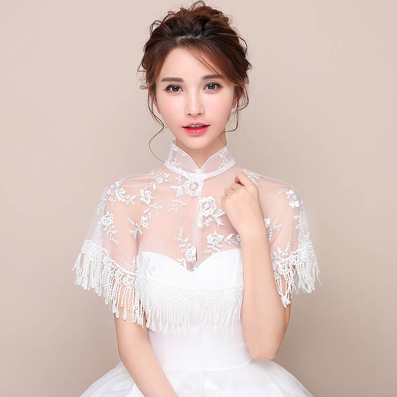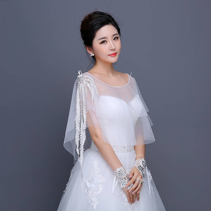薄纱式的披肩一般适合薄纱式的抹胸裙或者吊带裙,有着”出淤泥而不染“的高贵情怀,更加的简约圣洁,能表达出搭配着那种干净纯粹的心灵之美,适合的蝴蝶结式的留白和蕾丝的手环,让搭配更加的迷人和清新。