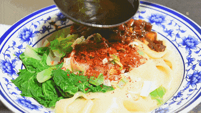 这个面相信大家都很熟悉,因为它实在太有名了。 biangbiang面是陕西关中的传统风味面食,因为制作过程中有biang、biang的声音而得名,通常手工拉成长宽厚的面条。