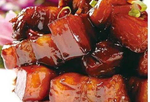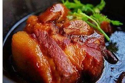 5.最后,将火关闭,然后,将锅盖打开,把五花肉取出,再浇上酱汁,并且放入盘中,就可以食用了。