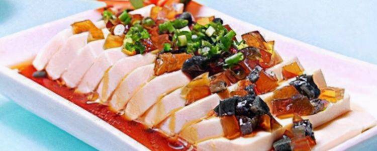 3.将切好的皮蛋铺在最上层。可以稍撒些香葱花,如果介意也可不放。