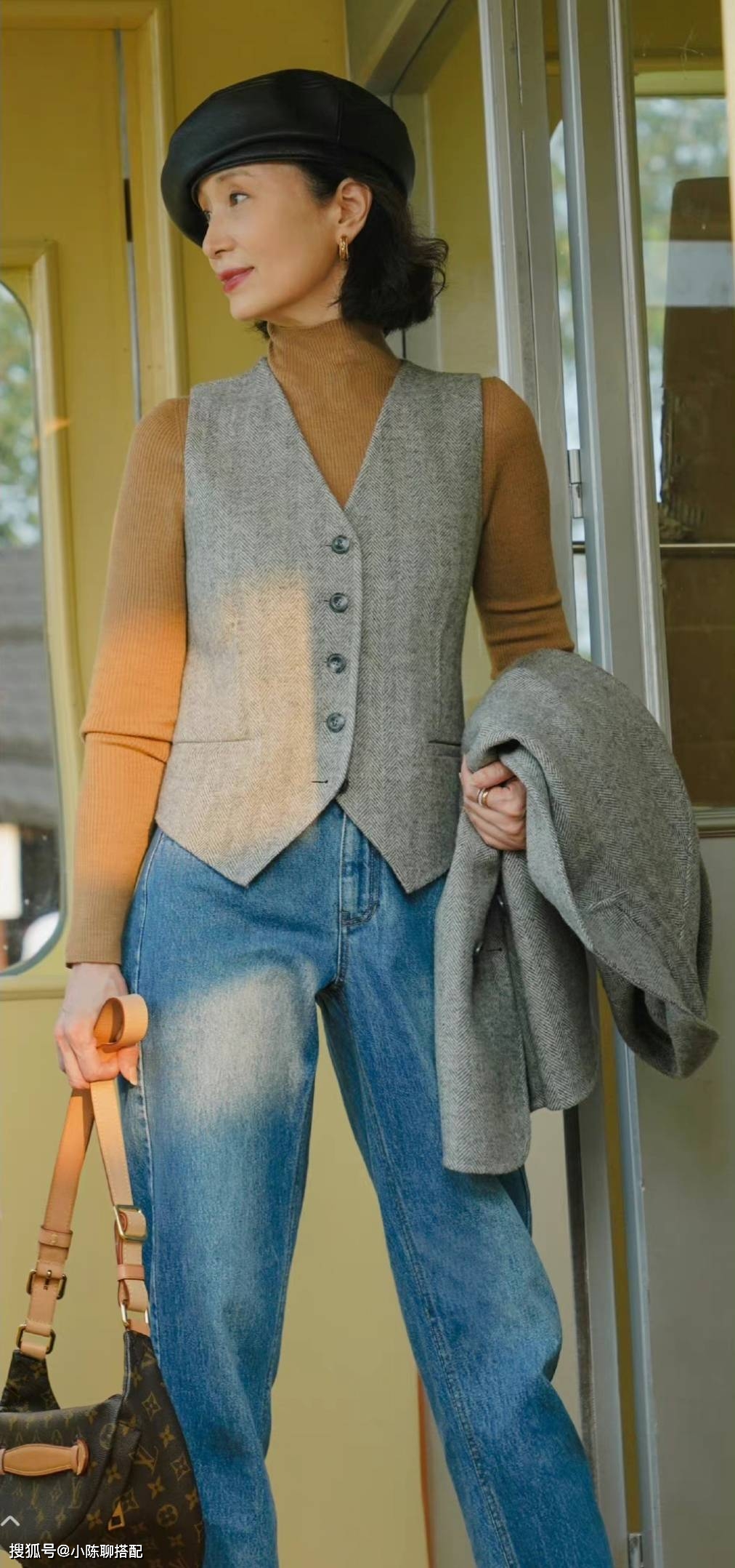 打底衫+马甲:经常在男士西装里面看到各种马甲,女士穿得比较少,尤其是中年女性,其实找到合身又好看的马甲穿上身,能与中年女性的温润如玉的沉淀感碰撞出不一样的气质出来,平添一份少年感和英气,仿佛回到了少女时代的那种朝气蓬勃感。