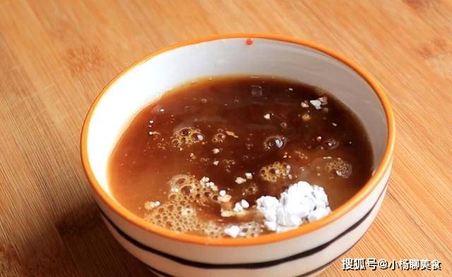 3、调制一碗料汁,准备一个碗,碗中加入适量盐、鸡精、淀粉、生抽、蚝油,再倒入半碗清水,搅拌均匀后料汁就调制好了,放置一旁备用;