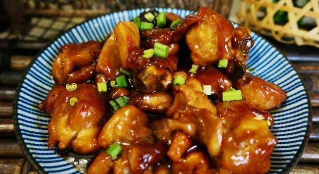 4. 不粘锅放少许油,然后放入鸡块,中火煎至微金黄。油不要太多,因为鸡肉还要出油,油太多容易外溅。