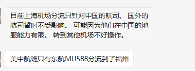 据FlyChina负责人表示,目前上海机场分流只针对中国的航司,所以受此影响的为纽约飞往上海浦东的东航MU588,分流至福州。国外的航司暂时不受影响。