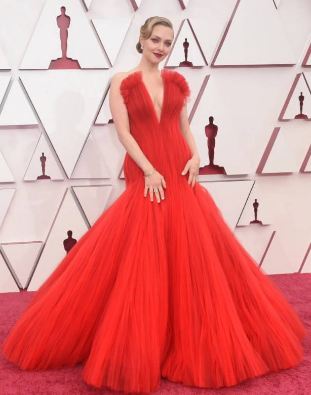 由乔治·阿玛尼亲自设计,阿曼达·赛义德的红色薄纱创作灵感来自芙蓉花。像一个真正的女主角。