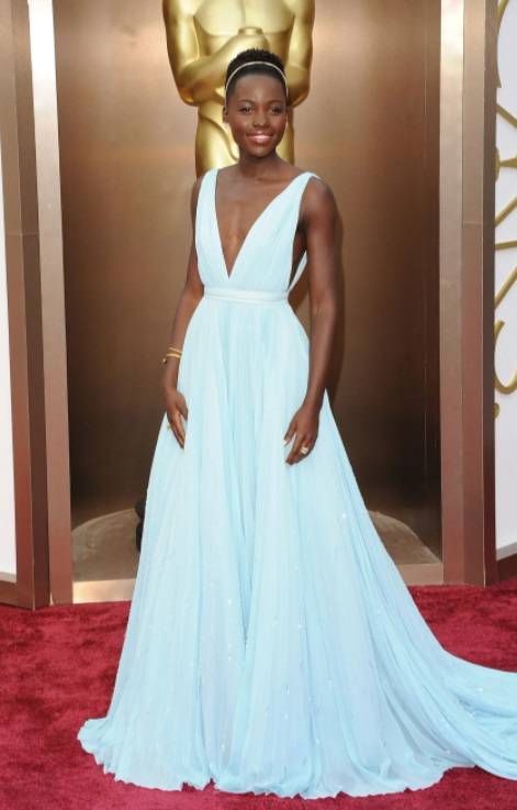 露皮塔·尼永奥在 2014 年的奥斯卡颁奖典礼上穿的普拉达连衣裙有一种真正的魔力。首先,淡蓝色非常适合这位女演员,而特殊的廓形则完成了其余的工作。