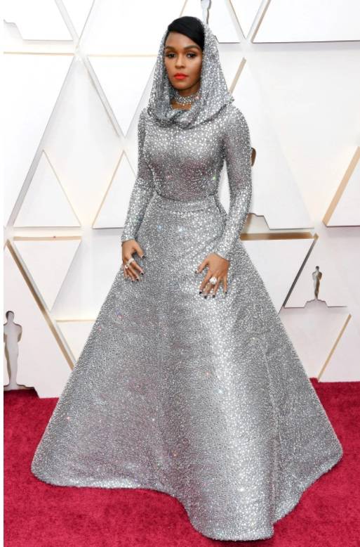 反传统但独特:珍妮尔·莫奈的亮片连衣裙披肩散发着未来感。但超级迷人。