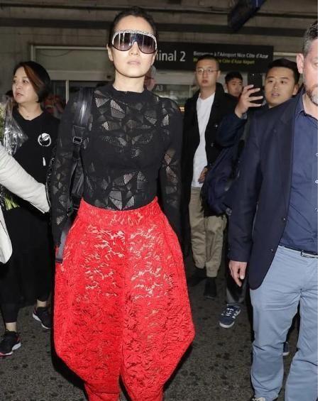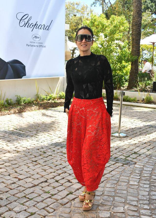 巩俐真敢穿,“刺绣萝卜裤”也能驾驭住,一身红黑配气场好强大。