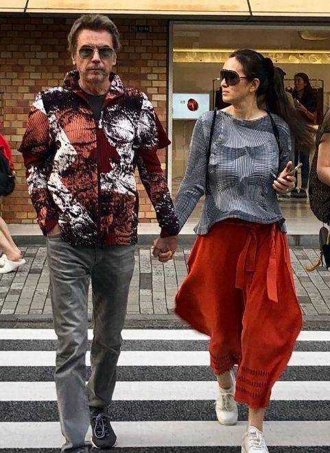 花裤子的材质也需要格外注意,印花款如果花色太复杂容易花哨,如果面料本身质感不好,也可能和巩俐的红色刺绣裤一样易显廉价。图中这类暗底色、有厚度的面料,更容易穿出高级感,叠搭纯色上衣就很好看,这样的款式才更推荐。