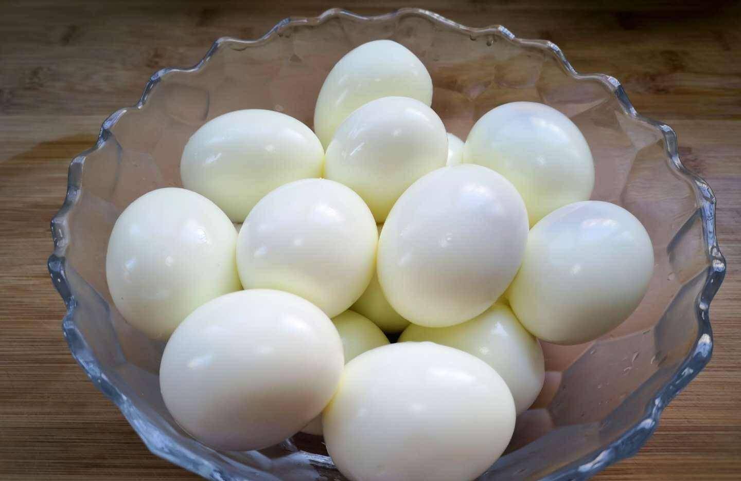 4、鸡蛋泡一会,蛋壳上的那层薄膜跟蛋白很容易剥离,全部剥去壳。