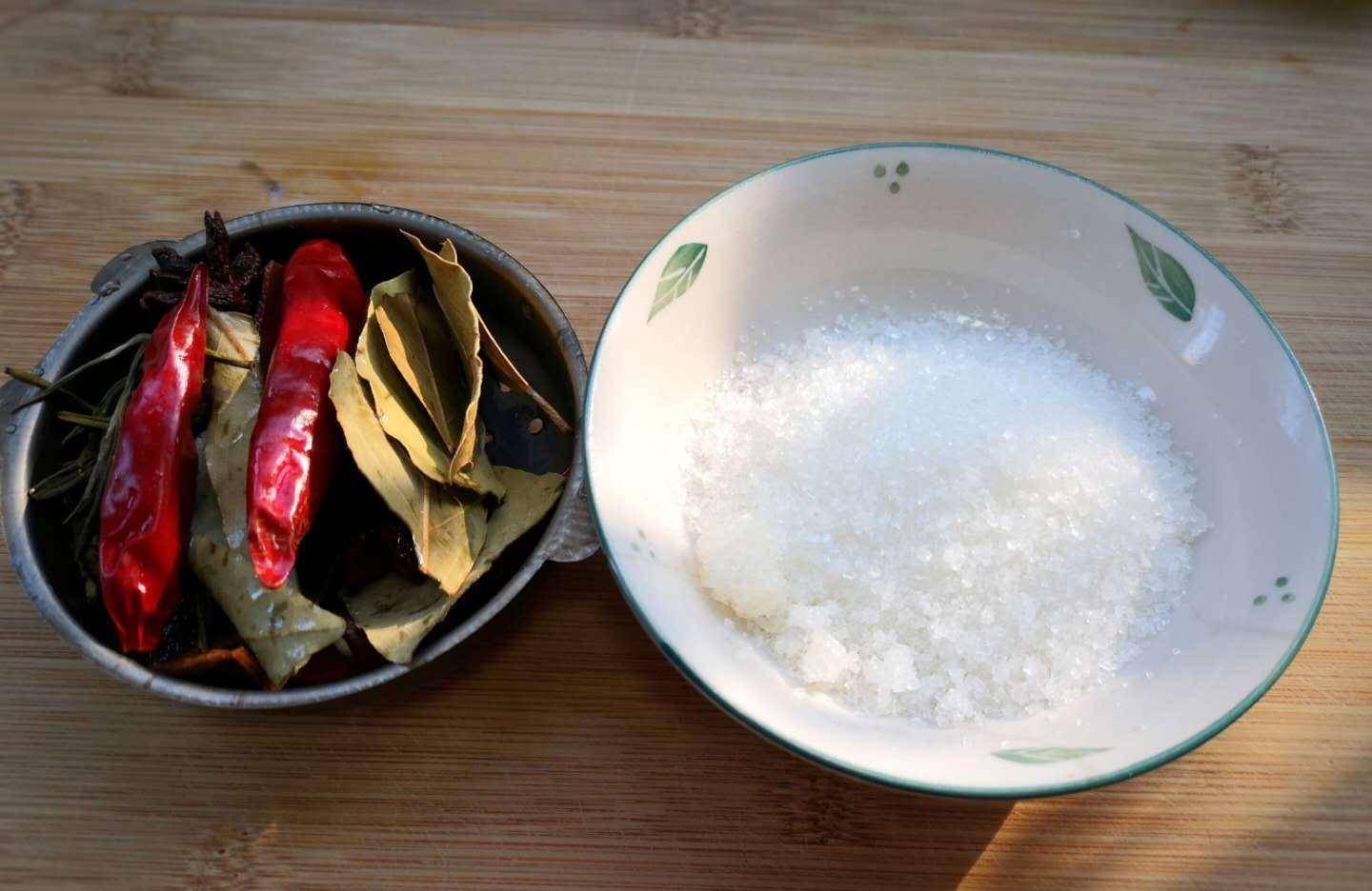 5、将八角,桂皮,香叶,干辣椒,茶叶,用清水清洗一遍,控干水分,放入调味料盒中。