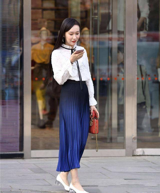 上图这种渐变色的裙装,很好地展现出层次感的洋气,修身的剪裁赋予穿着者精致大方的既视感,并且特别自然,没有丝毫的装美、做作。层次分明的风格,显得洋气又大方,时尚是这种搭配的强烈标识。