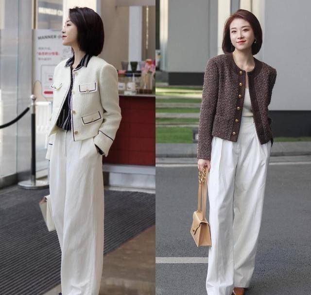 小香风外套与阔腿裤的组合是香奈儿的经典搭配,这种穿法的特别之处在于选择了不过时的款式和显高显瘦的穿法。