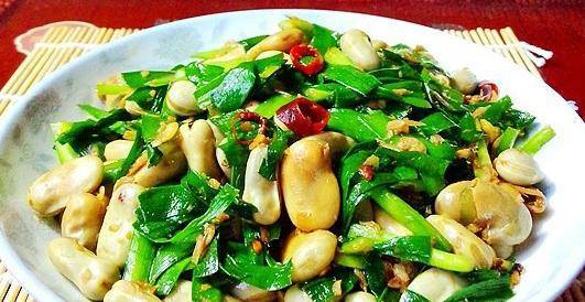韭菜虾皮炒蚕豆