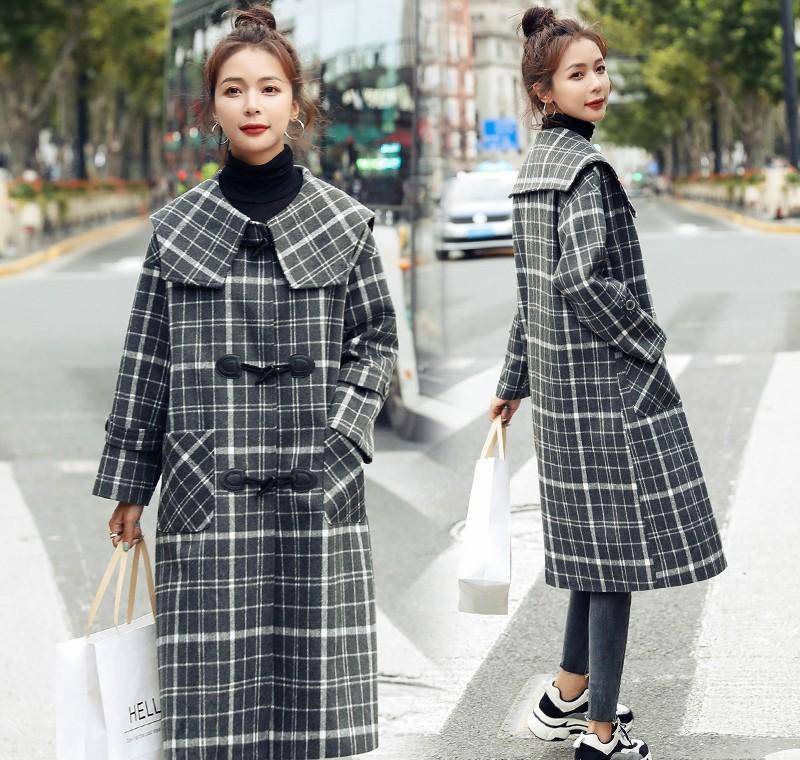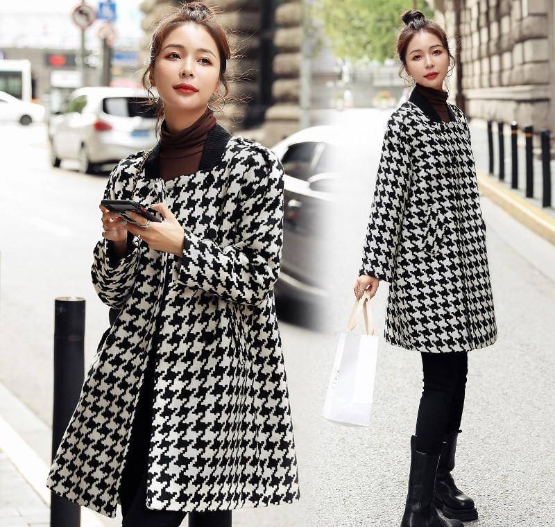 加厚格纹毛呢大衣, 款式简约好搭配,修身大翻领单排扣,长度适中,小个子也能轻松驾驭,还能让你的真身造型看起来很休闲很年轻。 自带复古风,而且很有女人味,所以搭配小脚裤高跟鞋的话,瞬间就有一种干练的气场来!