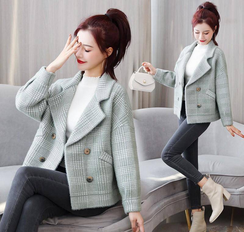 水貂绒双排扣格子外套,很清新秀气的蓝绿色格纹,传递出的是小家碧玉的邻家气质。 利落有型的小短款,时尚大方的西装翻领,与大气的双排扣很是抢眼,个子娇小的宝宝们内搭厚底鞋或者高跟鞋也是能驾驭的哦。