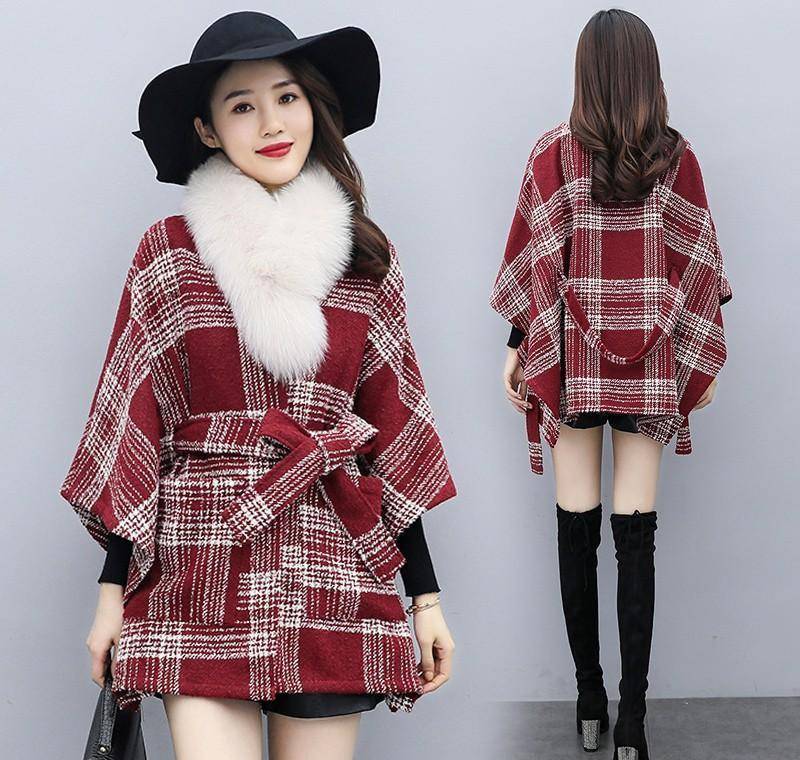 简约大牌的红格子斗篷大衣,采用自然垂顺的粗纺彩格面料,柔软又保暖,不挑身材的披肩式斗篷,落肩的袖型,宽松大版型,穿着舒适,简洁的红黑线条勾勒出大小不一的格子,领子是最简单的圆领,将极简主义进行到底,斗篷狐狸毛围巾,更是高贵又奢华。不规则的宽松衣摆,整体的感觉大方优雅,吸睛指数绝对不低。