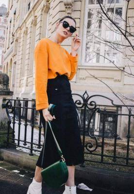 亮色的服装也属于是今年的一个流行元素了,亮色卫衣、亮色运动裤、亮色毛衣层出不穷。象征着青春活力的亮色毛衣,无论谁穿上都能直接减龄。过膝的半身裙又有一种时尚知性的温柔感,这两件单品撞在一起就像是“火星撞地球一样”,不敢想象但肯定很吸引人眼球,回头率超高。