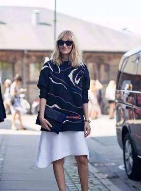 不规则群最大的特点就是俏皮,会把本来很稳重点单品也带有青春感。所以,用不规则半身裙去中和一下卫衣的那种强烈的运动感是再合适不过的了。