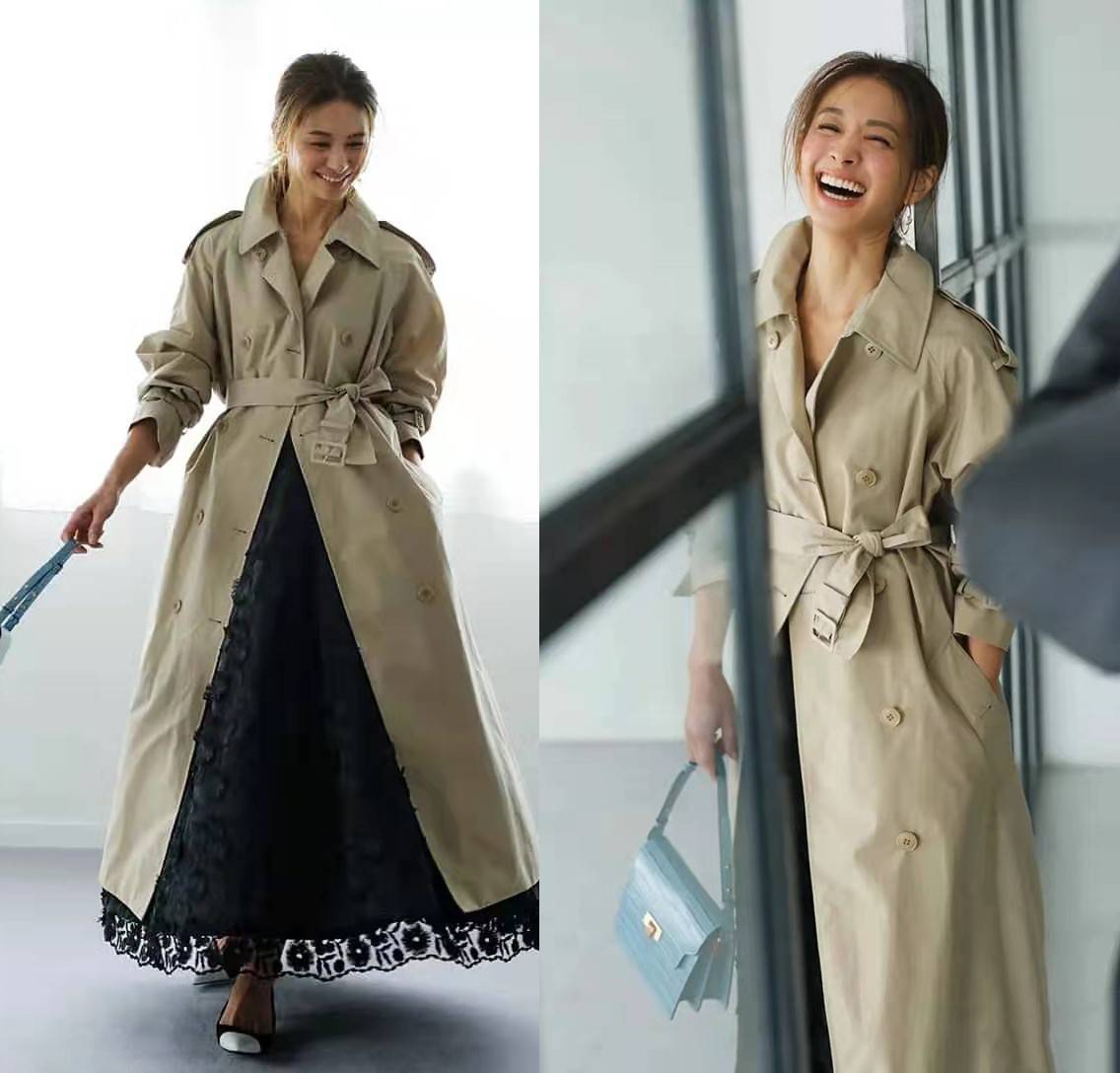 这一件卡其色的风衣就是经常能见到的款式,无论从颜色还是面料上来讲,都不怎么挑人,特别是对于成熟女性而言,它很能彰显干练时髦的一面。