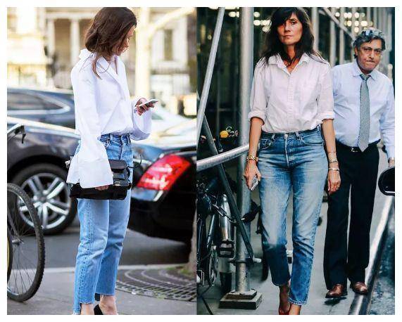 白色衬衫足够简单。本身有太多的版型和面料,可以根据单品展现完全不同的风格。这是白衬衫最酷的搭配,牛仔裤的第一套!这充满了法国街头懒惰和优雅的样子。