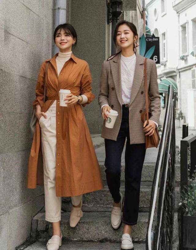 如果想要高级优雅一些,可以选择乐福鞋搭配风衣,是秋日季节里的首选,出门上班走到很是舒适,又不失高级感;换成职业感强烈的小西装也是轻松驾驭,展现出落落大方的气场范。
